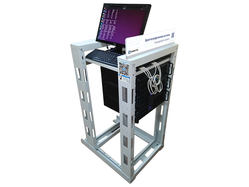 Комплект учебного оборудования выполнен в виде напольной телекоммуникационной стойки и предназначен для выполнения лабораторных работ по изучению методов и средств криптографической защиты информации в компьютерных сетях.
