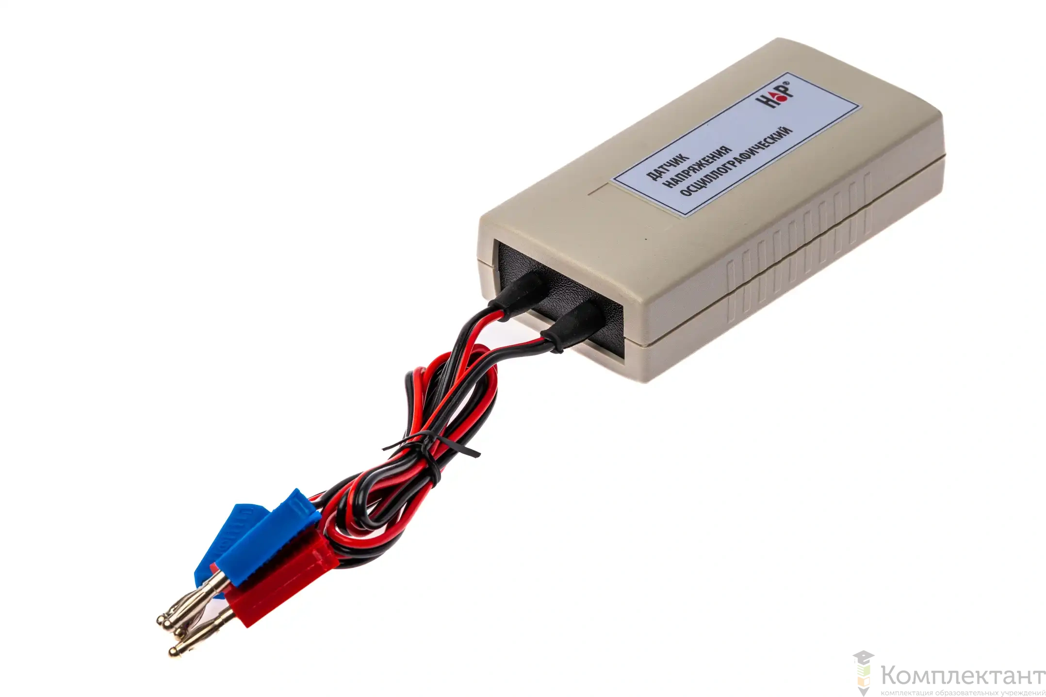 Датчик имеет дифференциальные входы с возможностью одновременного подключения измерительных кабелей разных каналов к произвольным элементам учебной электрической цепи для измерения напряжения между выводами этих элементов.