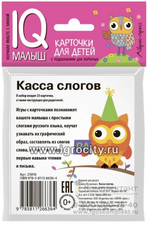 Карточки для детей "IQ малыш. Касса слогов" (слоговые карточки), Айрис-Пресс, размер карточки 8х9 см, арт.25816